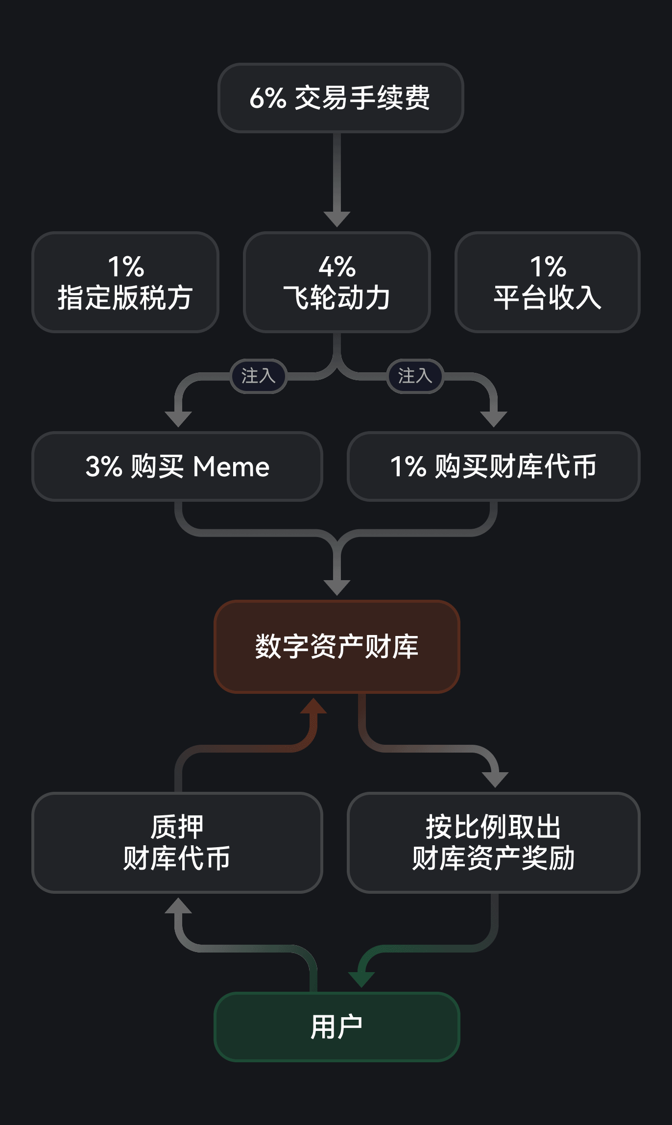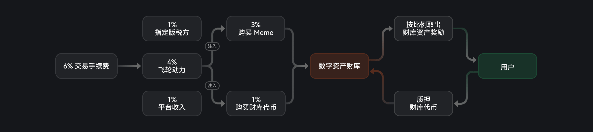 STR.FUN protocol uses 3% of token transaction fees to automatically buy Meme tokens and 1% to buy treasury tokens, all injected into the DAT digital asset treasury. Users can stake treasury tokens and withdraw accumulated rewards at any time.
